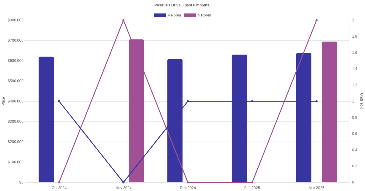 | Mar 2025 | $3,400 | 4 Room | Blk 627 Pasir Ris Drive 3 4 Room | Pasir Ris |