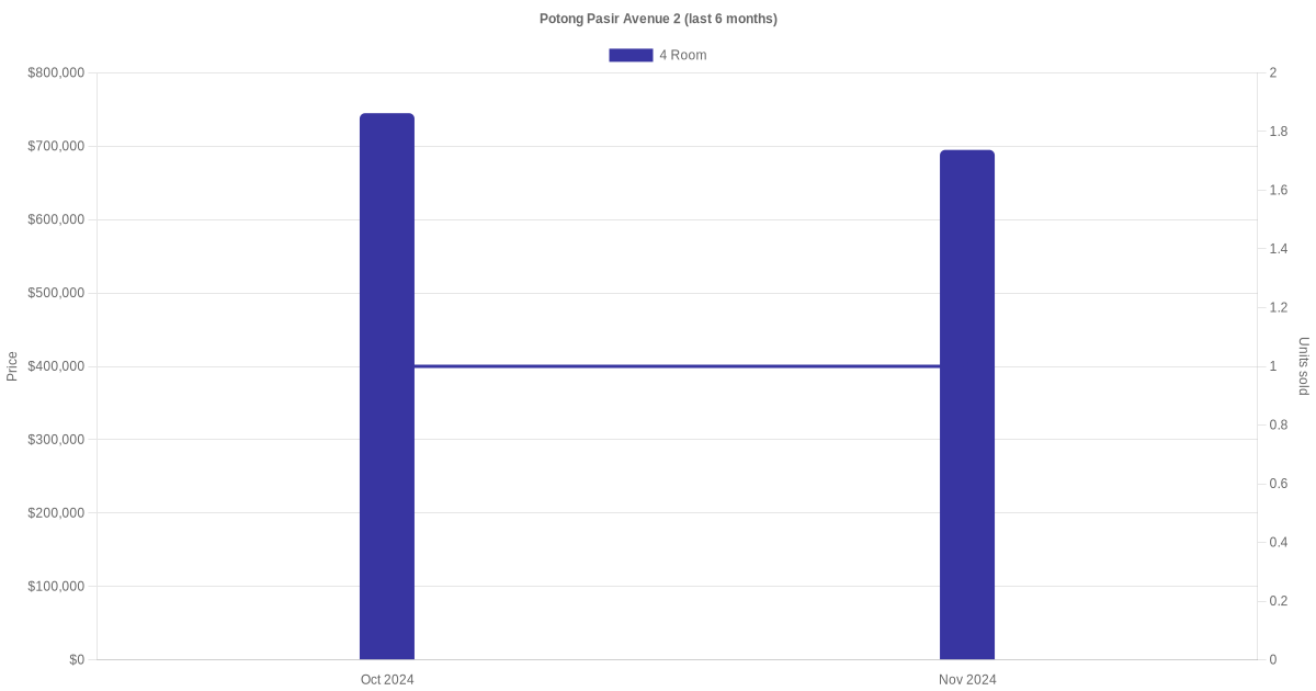 Located along Potong Pasir Avenue 2 are various HDB flat types including 3 room, 4 room and 5 room units. Shown below is a view of the resale price and transactions trends, broken down by month, in the last 3 years.