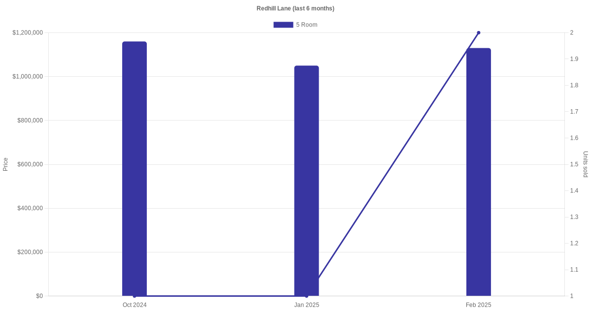 Located along Redhill Lane are various HDB flat types including 4 room and 5 room units. Shown below is a view of the resale price and transactions trends, broken down by month, in the last 3 years.