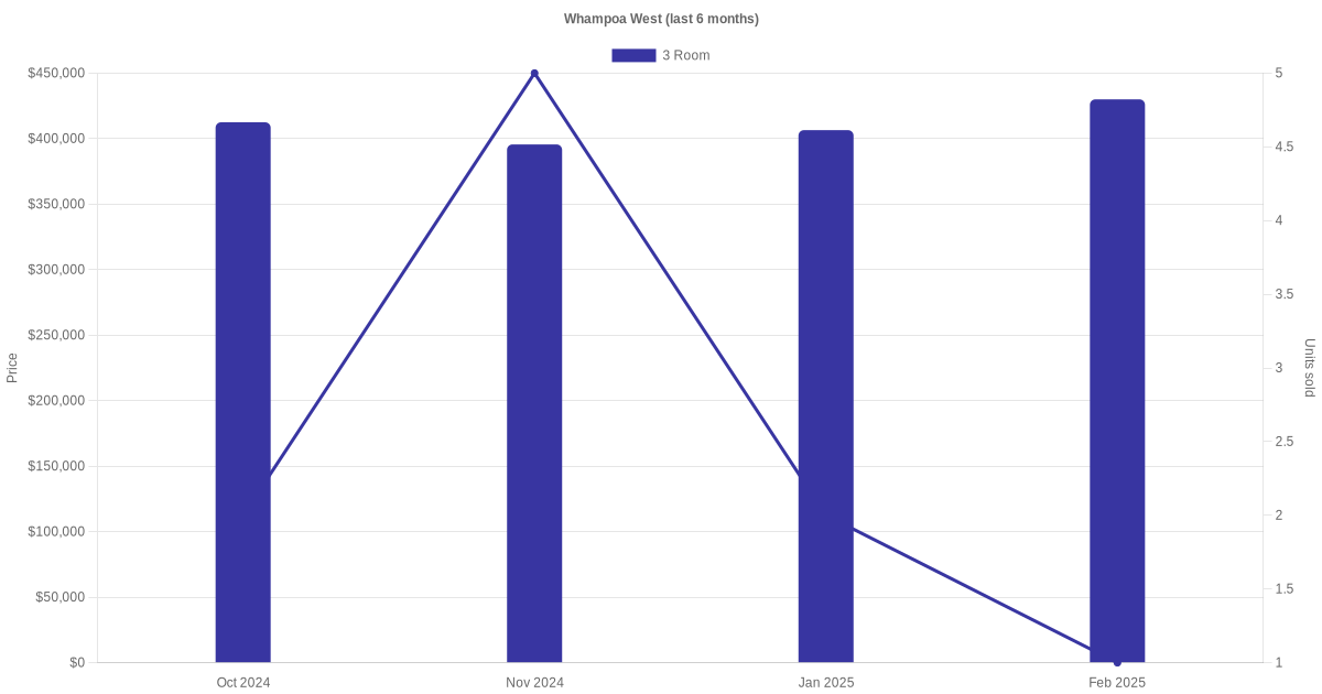 Located along Whampoa West are various HDB flat types including 3 room and 5 room units. Shown below is a view of the resale price and transactions trends, broken down by month, in the last 3 years.