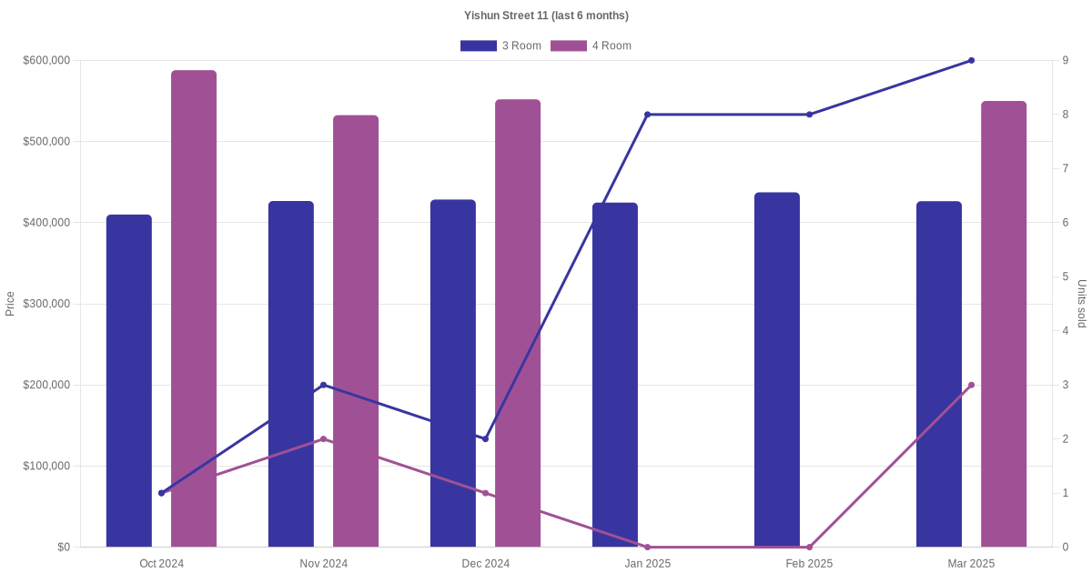 | Oct 2025 | $2,600 | 3 Room | Blk 147 Yishun Street 11 3 Room | Yishun |