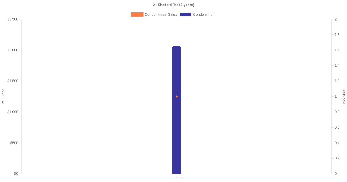 | Jul 2025 | $1,800,000 (Resale) | $2,065 | Condominium | 21 Shelford Shelford Road (District 11) | 01-05 | 872 sqft | Freehold | - |