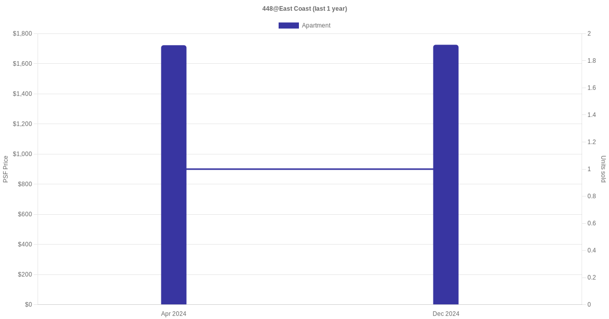 There were a total of 5 sales transactions for 448@East Coast in the last 3 years, with the latest one recorded in Oct 2025. Disclaimer : our transactions data below does not include block numbers as the data is not available.