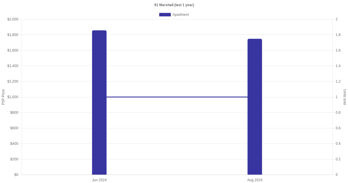 There were a total of 5 sales transactions for 91 Marshall in the last 3 years, with the latest one recorded in Aug 2025. Disclaimer : our transactions data below does not include block numbers as the data is not available.