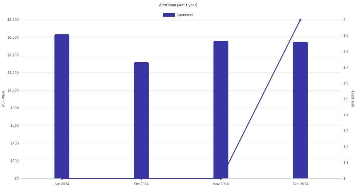 The graph below shows the average monthly transacted sale price for each of the apartment units for Airstream in the last 3 years. This is based on the transactional data collated for Airstream for the selected period.