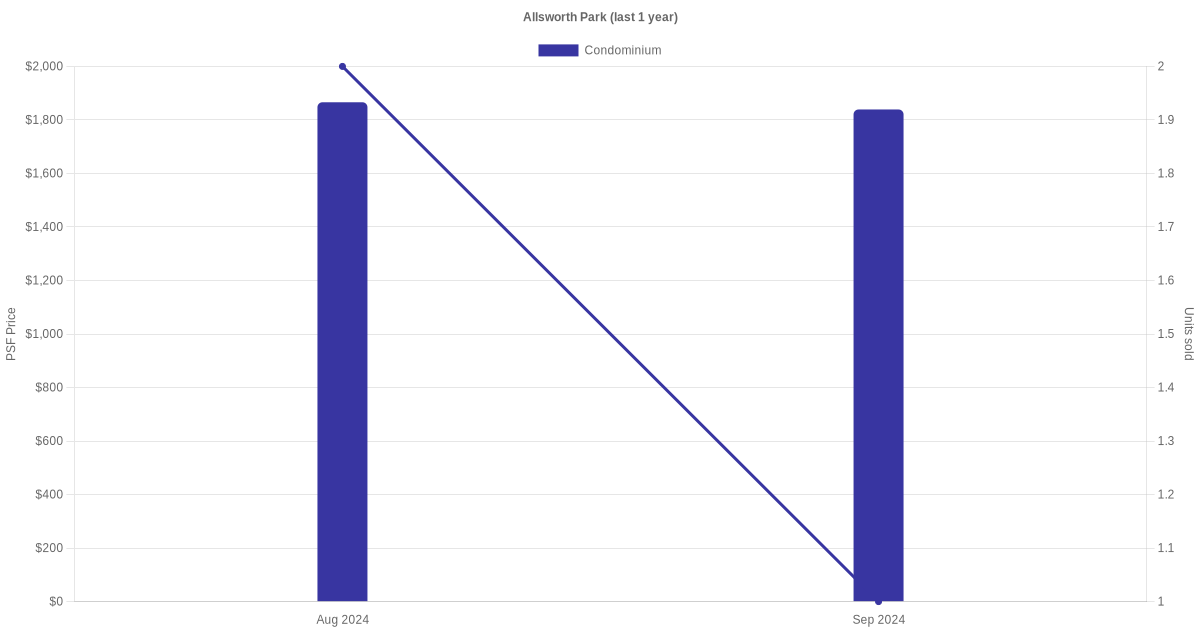 The graph below shows the average monthly transacted sale price for each of the condominium units for Allsworth Park in the last 3 years. This is based on the transactional data collated for Allsworth Park for the selected period.