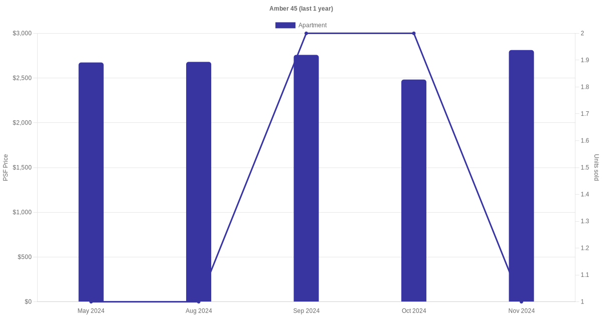 There were a total of 17 sales transactions for Amber 45 in the last 3 years, with the latest one recorded in Nov 2025. Disclaimer : our transactions data below does not include block numbers as the data is not available.