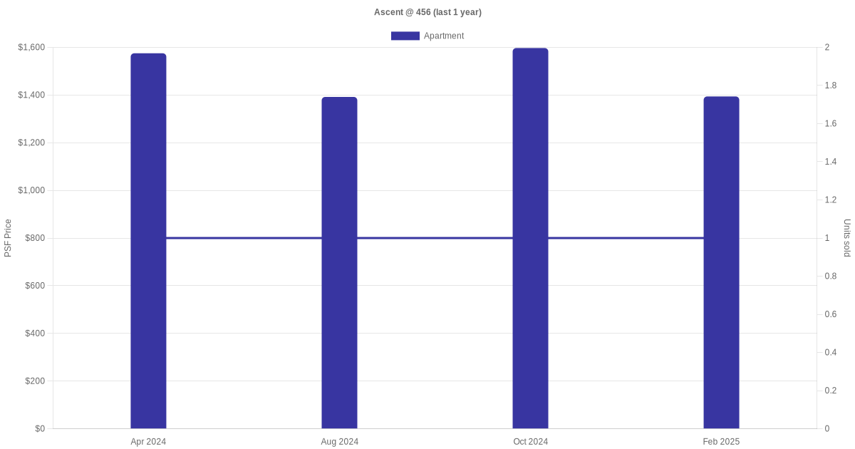 There were a total of 11 sales transactions for Ascent @ 456 in the last 3 years, with the latest one recorded in Oct 2025. Disclaimer : our transactions data below does not include block numbers as the data is not available.