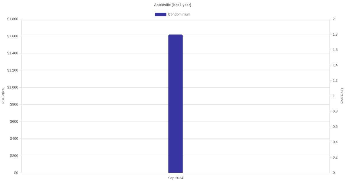There were a total of 2 sales transactions for Astridville in the last 3 years, with the latest one recorded in Sep 2024. Disclaimer : our transactions data below does not include block numbers as the data is not available.