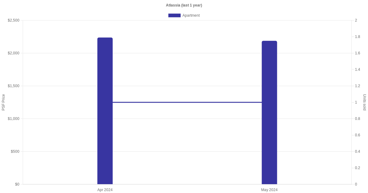 The graph below shows the average monthly transacted sale price for each of the apartment units for Atlassia in the last 3 years. This is based on the transactional data collated for Atlassia for the selected period.