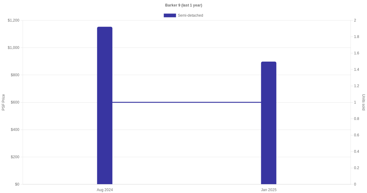 There were a total of 2 sales transactions for Barker 9 in the last 3 years, with the latest one recorded in Jan 2025. Disclaimer : our transactions data below does not include block numbers as the data is not available.