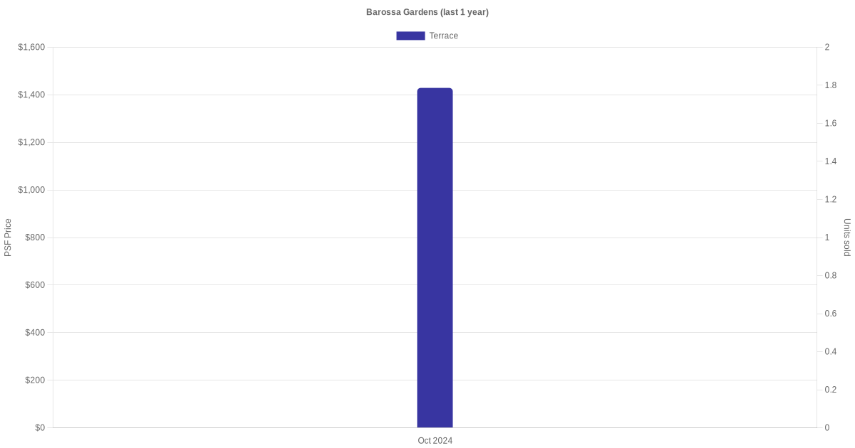 | Oct 2024 | $2,830,000 (Resale) | $1,429 | Terrace | Barossa Gardens Pasir Panjang Road (District 05) | 01-05 | 1981 sqft | Freehold | - |