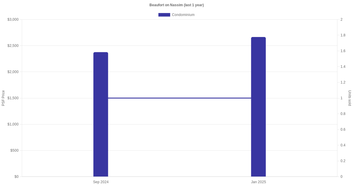 There were a total of 3 sales transactions for Beaufort on Nassim in the last 3 years, with the latest one recorded in Jan 2025. Disclaimer : our transactions data below does not include block numbers as the data is not available.