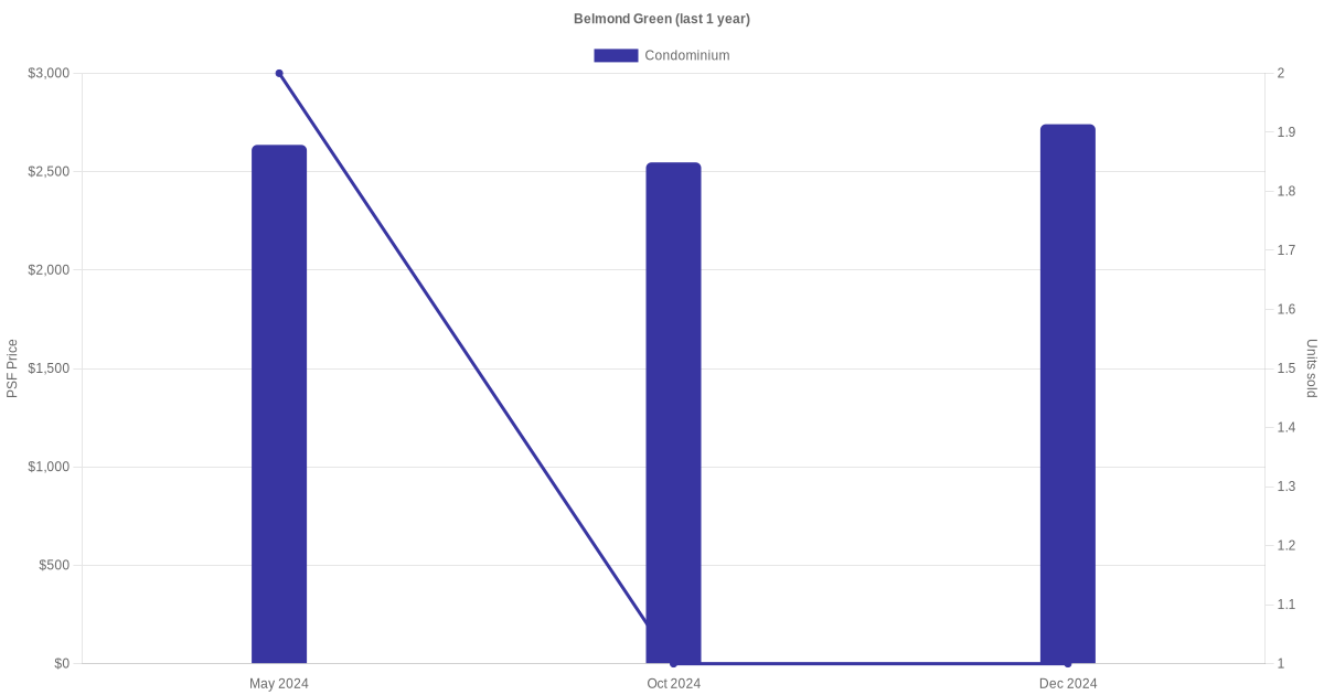 The graph below shows the average monthly transacted sale price for each of the condominium units for Belmond Green in the last 3 years. This is based on the transactional data collated for Belmond Green for the selected period.