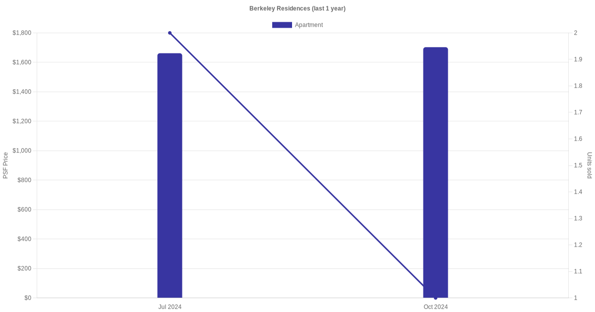There were a total of 7 sales transactions for Berkeley Residences in the last 3 years, with the latest one recorded in Nov 2025. Disclaimer : our transactions data below does not include block numbers as the data is not available.