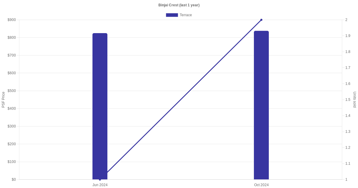 There were a total of 14 sales transactions for Binjai Crest in the last 3 years, with the latest one recorded in Oct 2025. Disclaimer : our transactions data below does not include block numbers as the data is not available.