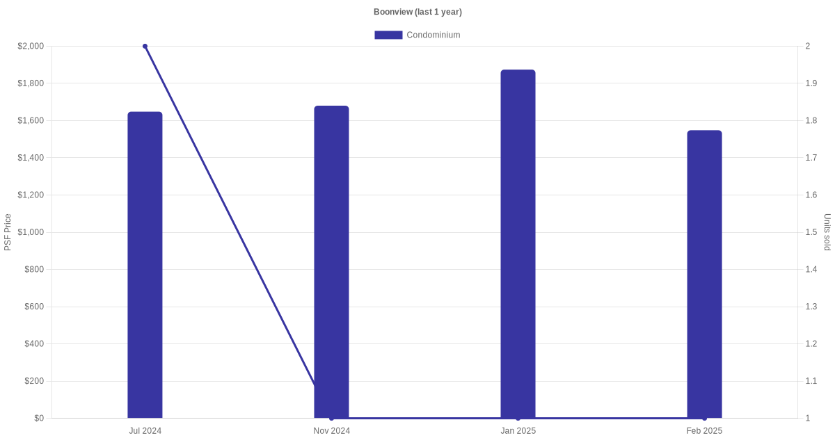 There were a total of 8 sales transactions for Boonview in the last 3 years, with the latest one recorded in Dec 2025. Disclaimer : our transactions data below does not include block numbers as the data is not available.
