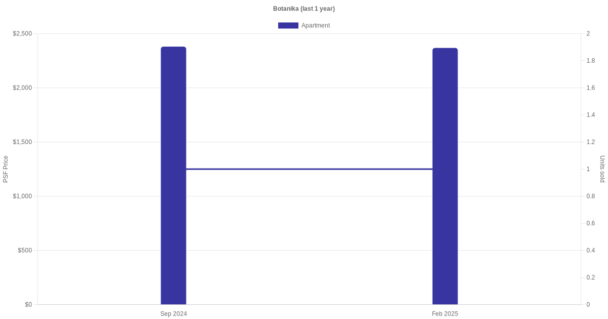 There were a total of 8 sales transactions for Botanika in the last 3 years, with the latest one recorded in Feb 2025. Disclaimer : our transactions data below does not include block numbers as the data is not available.