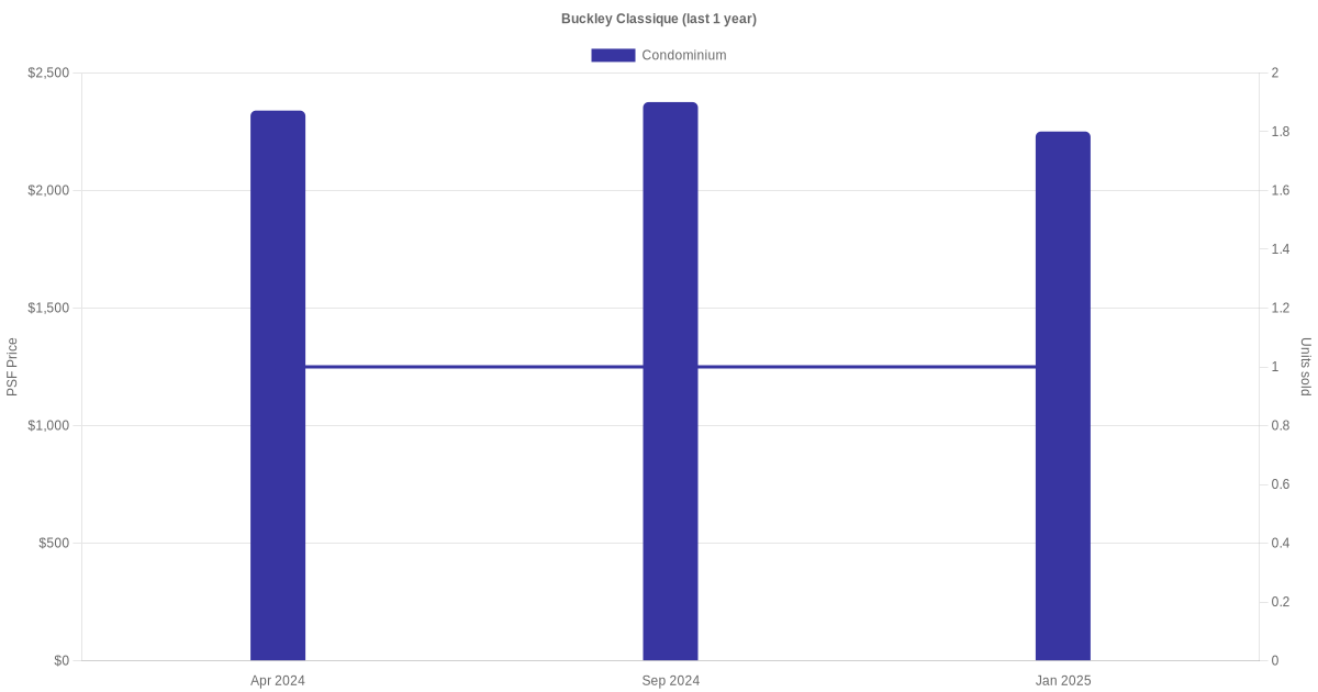There were a total of 7 sales transactions for Buckley Classique in the last 3 years, with the latest one recorded in Oct 2025. Disclaimer : our transactions data below does not include block numbers as the data is not available.