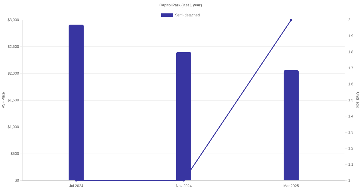 There were a total of 19 sales transactions for Capitol Park in the last 3 years, with the latest one recorded in Sep 2025. Disclaimer : our transactions data below does not include block numbers as the data is not available.