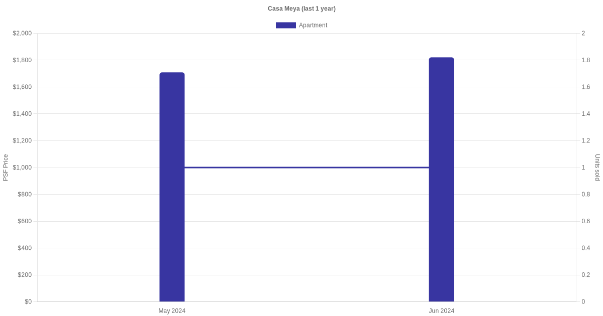 There were a total of 5 sales transactions for Casa Meya in the last 3 years, with the latest one recorded in Dec 2025. Disclaimer : our transactions data below does not include block numbers as the data is not available.
