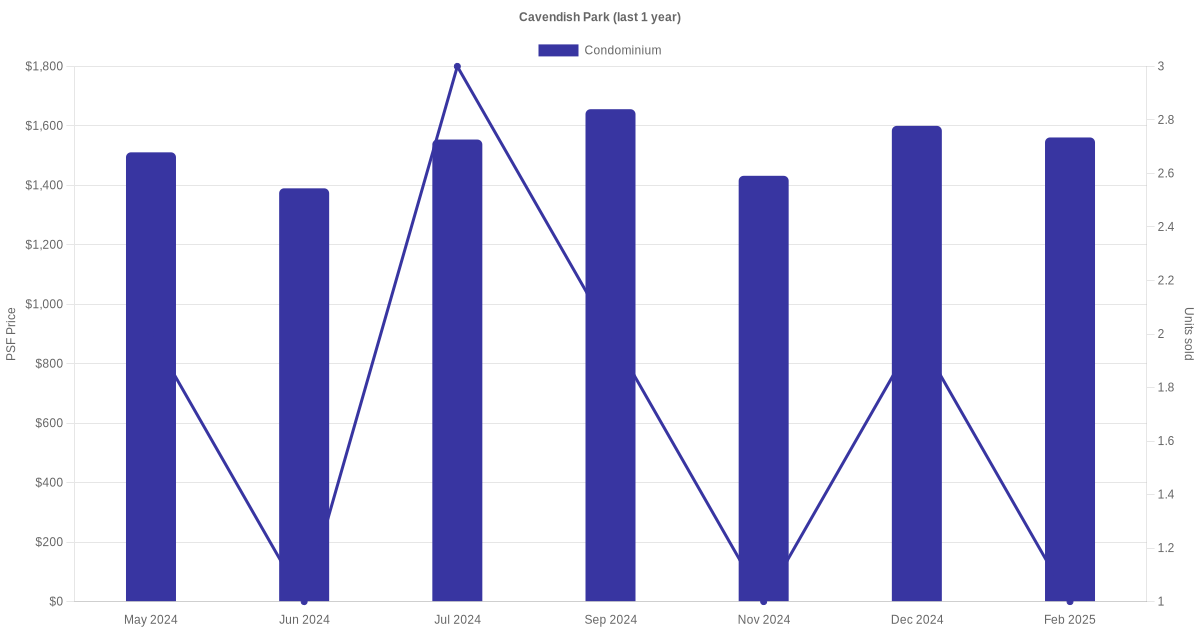 There were a total of 27 sales transactions for Cavendish Park in the last 3 years, with the latest one recorded in Jun 2025. Disclaimer : our transactions data below does not include block numbers as the data is not available.