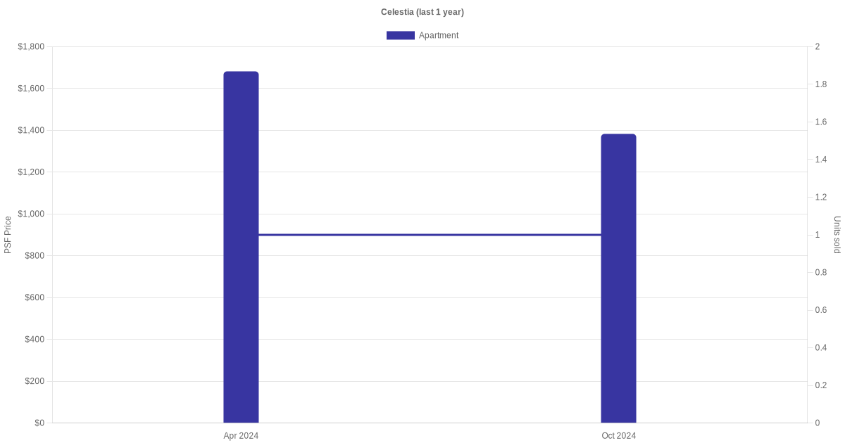 The graph below shows the average monthly transacted sale price for each of the apartment units for Celestia in the last 3 years. This is based on the transactional data collated for Celestia for the selected period.
