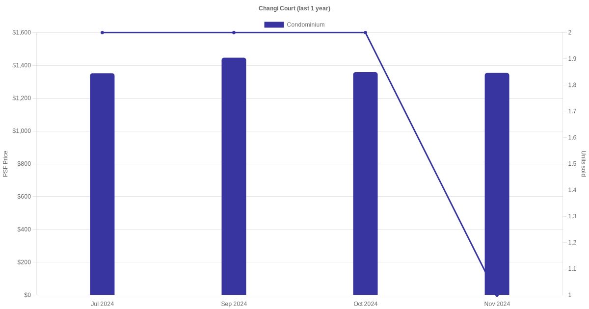 | Nov 2024 | $1,880,000 (Resale) | $1,354 | Condominium | Changi Court Upper Changi Road East (District 16) | 01-05 | 1389 sqft | Freehold | - |