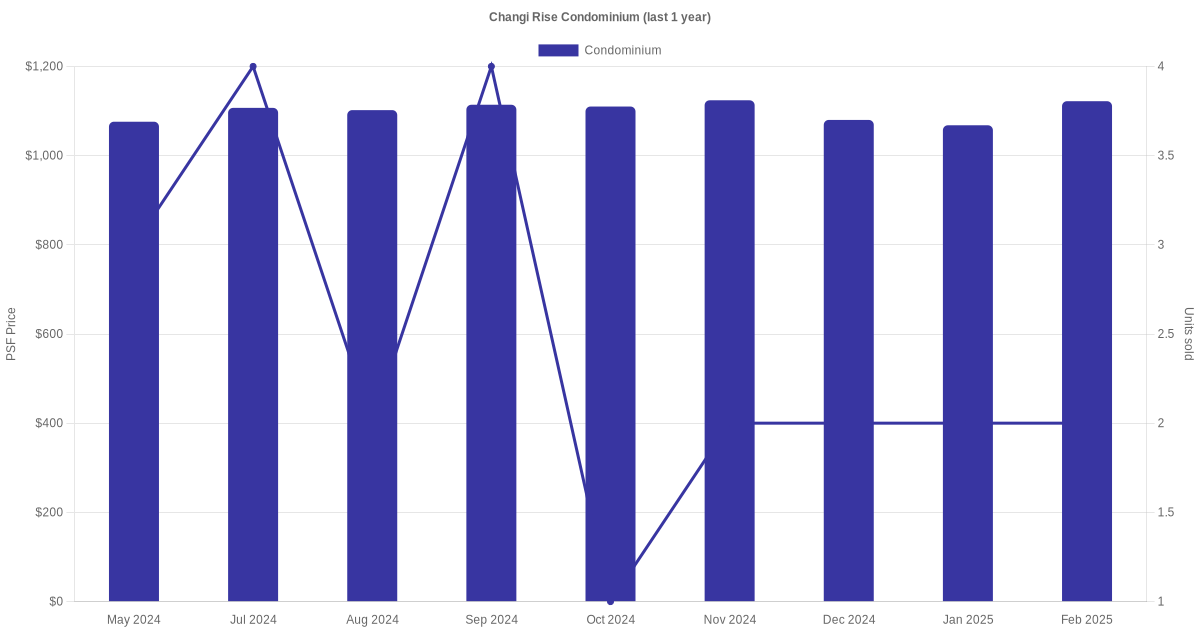 | Feb 2025 | $1,238,000 (Resale) | $1,095 | Condominium | Changi Rise Condominium Simei Rise (District 18) | 06-10 | 1130 sqft | 99 years | 2000 |