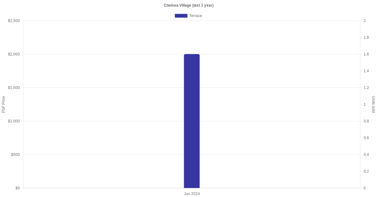 There were a total of 4 sales transactions for Chelsea Village in the last 3 years, with the latest one recorded in Apr 2025. Disclaimer : our transactions data below does not include block numbers as the data is not available.