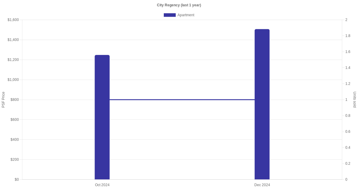 There were a total of 10 sales transactions for City Regency in the last 3 years, with the latest one recorded in Nov 2025. Disclaimer : our transactions data below does not include block numbers as the data is not available.