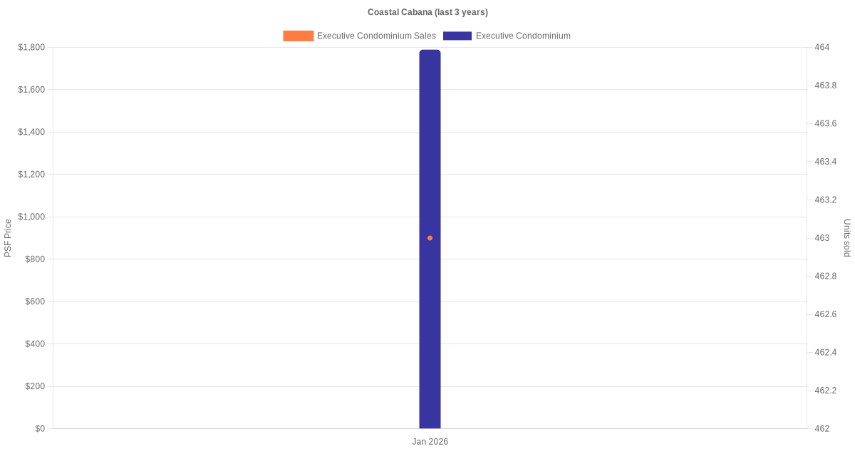 | Jan 2026 | $1,512,000 (New Sale) | $1,734 | Executive Condominium | Coastal Cabana Jalan Loyang Besar (District 17) | 01-05 | 872 sqft | 99 years | - |