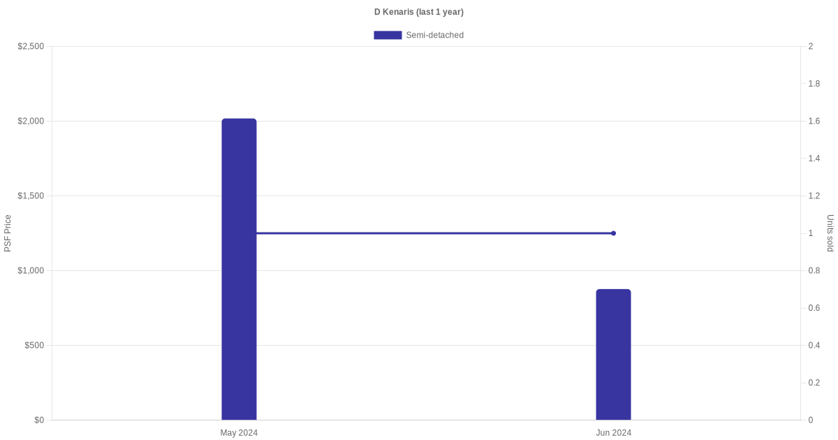 The graph below shows the average monthly transacted sale price for each of the semi-detached units for D' Kenaris in the last 3 years. This is based on the transactional data collated for D' Kenaris for the selected period.