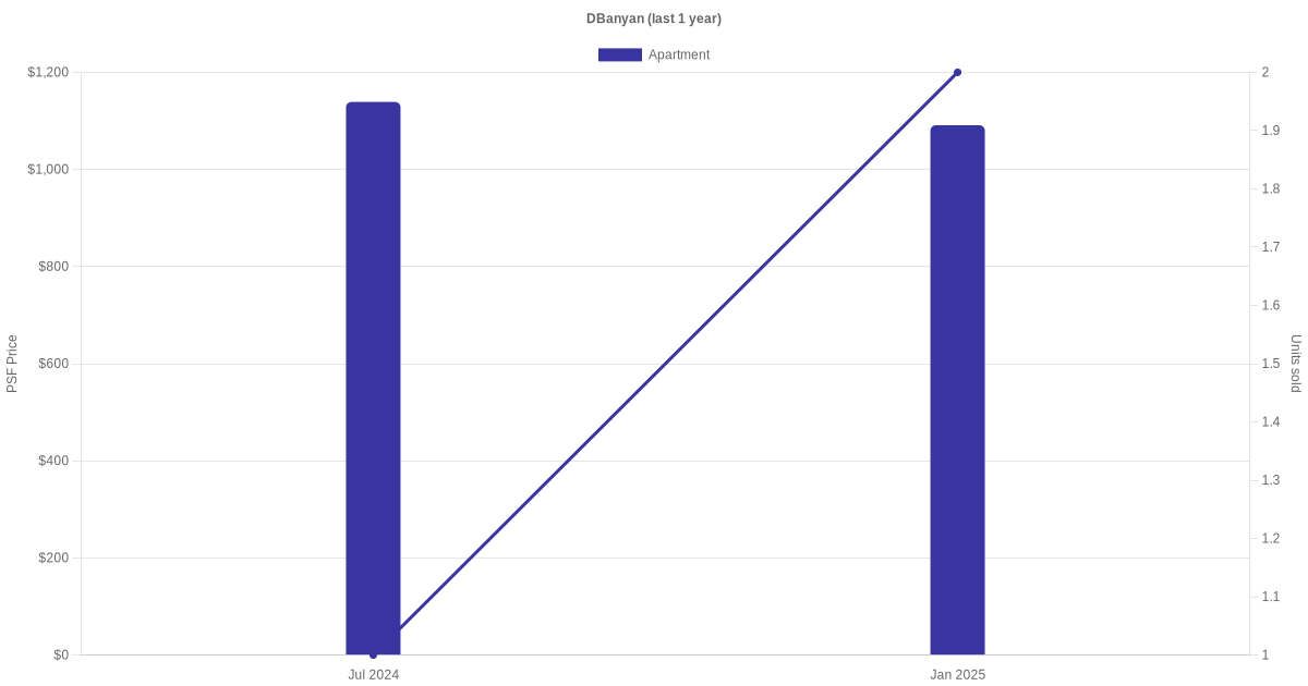 There were a total of 6 sales transactions for D'Banyan in the last 3 years, with the latest one recorded in Apr 2025. Disclaimer : our transactions data below does not include block numbers as the data is not available.