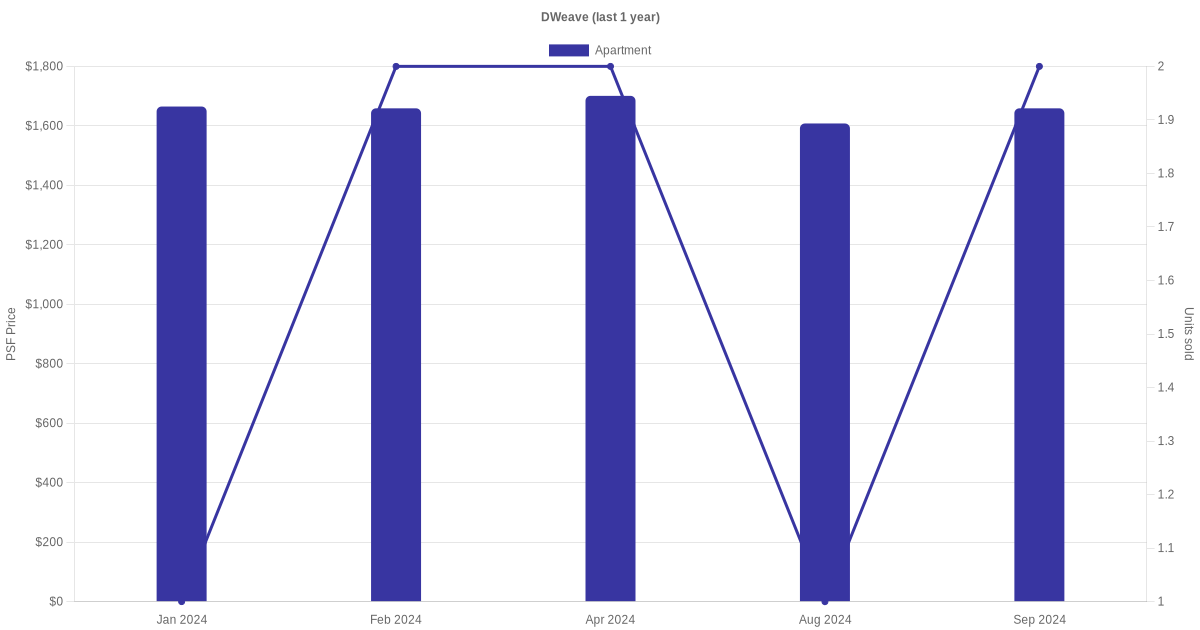 There were a total of 13 sales transactions for D'Weave in the last 3 years, with the latest one recorded in Jul 2025. Disclaimer : our transactions data below does not include block numbers as the data is not available.