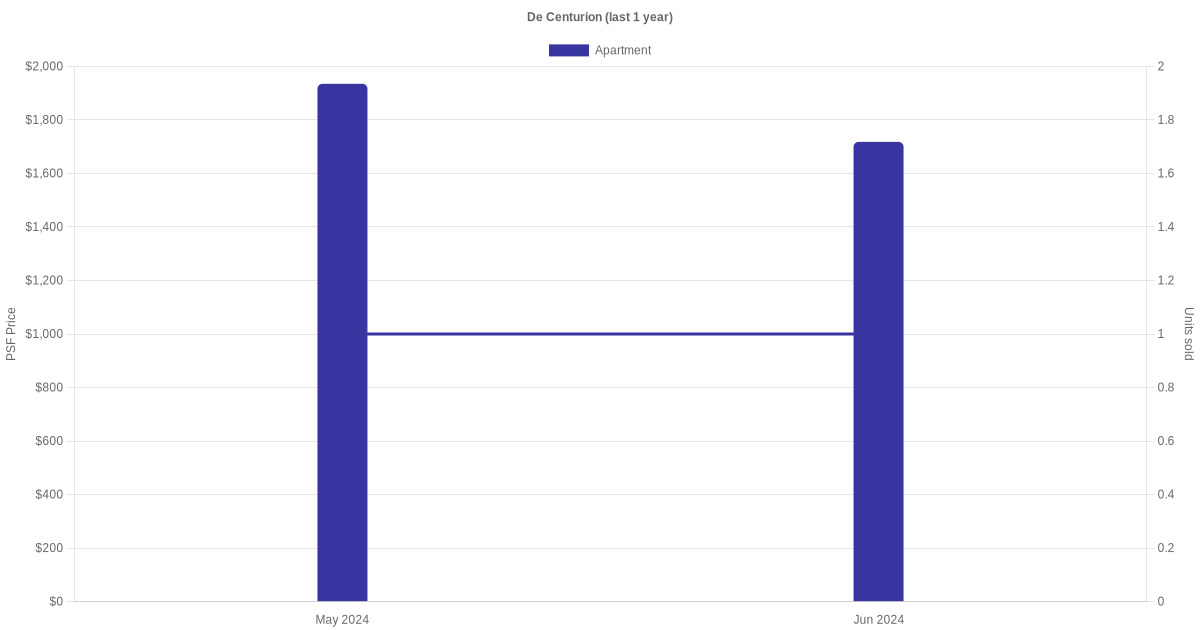 There were a total of 2 sales transactions for De Centurion in the last 3 years, with the latest one recorded in Jun 2024. Disclaimer : our transactions data below does not include block numbers as the data is not available.