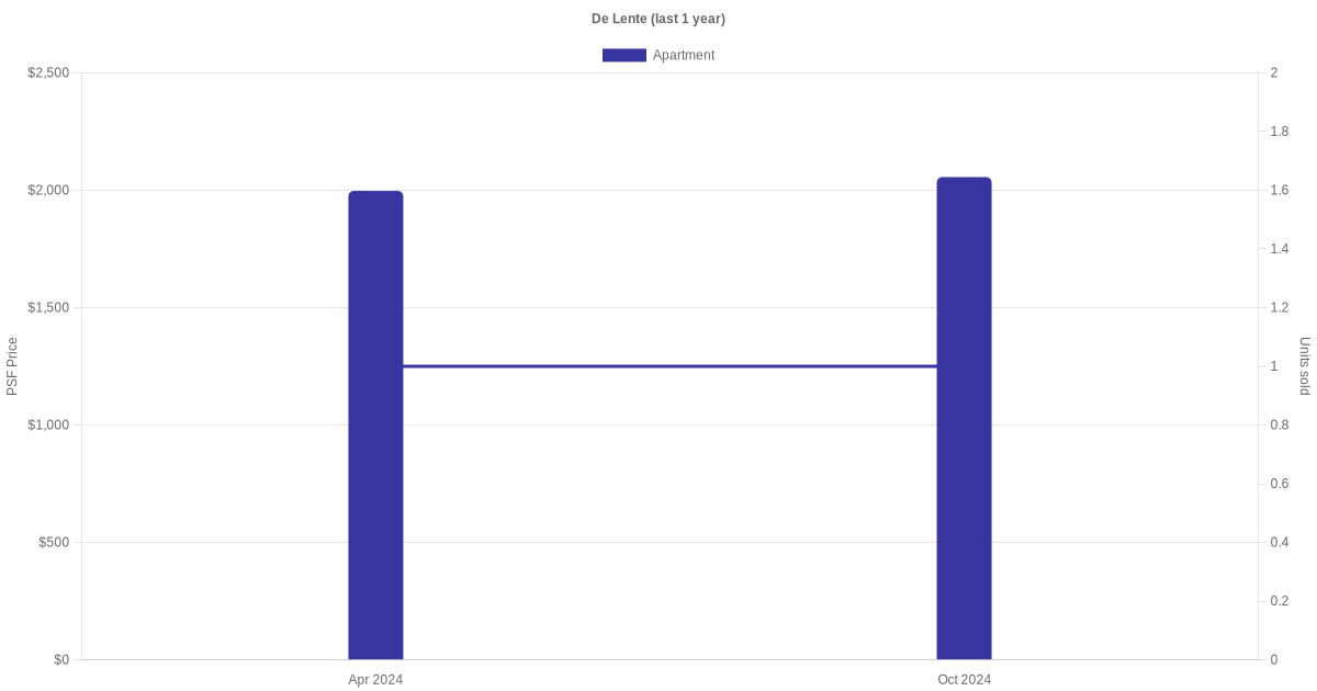 There were a total of 3 sales transactions for De Lente in the last 3 years, with the latest one recorded in Oct 2024. Disclaimer : our transactions data below does not include block numbers as the data is not available.