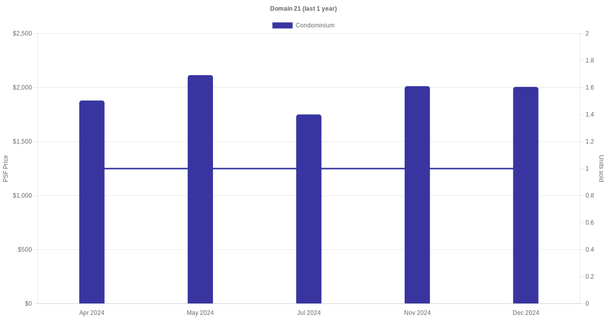 There were a total of 15 sales transactions for Domain 21 in the last 3 years, with the latest one recorded in Nov 2025. Disclaimer : our transactions data below does not include block numbers as the data is not available.