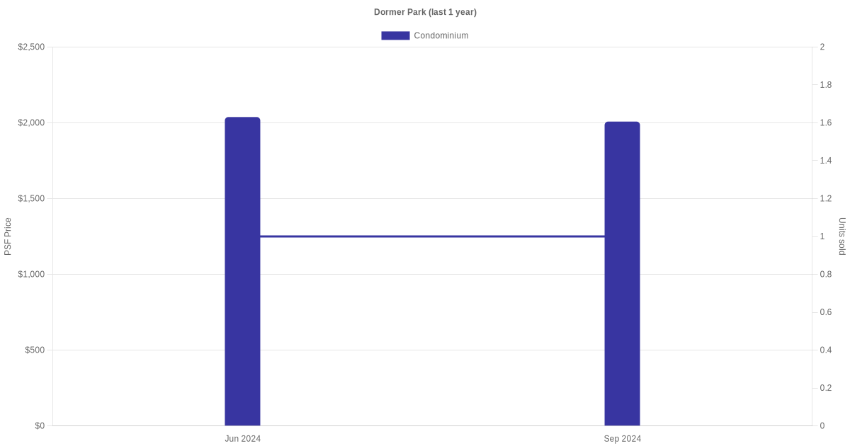 The graph below shows the average monthly transacted sale price for each of the condominium units for Dormer Park in the last 3 years. This is based on the transactional data collated for Dormer Park for the selected period.