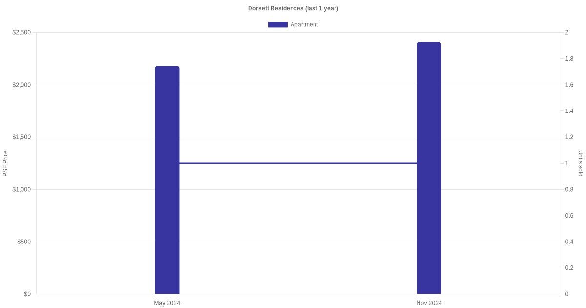 There were a total of 6 sales transactions for Dorsett Residences in the last 3 years, with the latest one recorded in Nov 2024. Disclaimer : our transactions data below does not include block numbers as the data is not available.