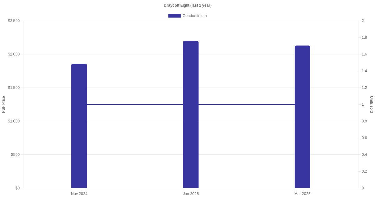 There were a total of 16 sales transactions for Draycott Eight in the last 3 years, with the latest one recorded in Dec 2025. Disclaimer : our transactions data below does not include block numbers as the data is not available.