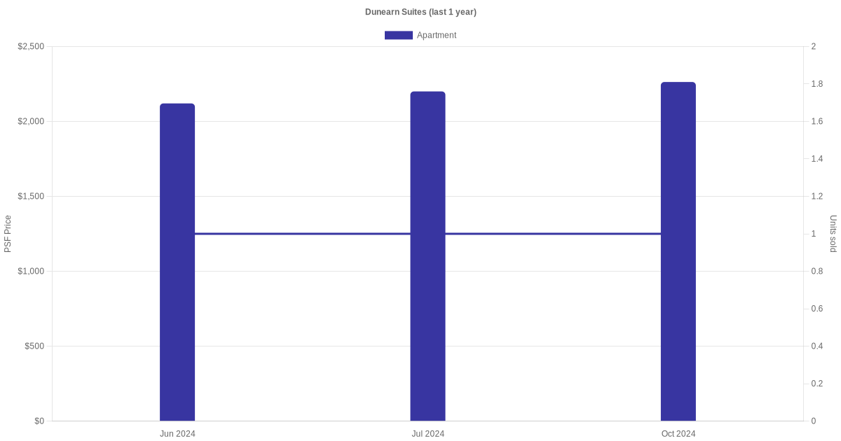 There were a total of 4 sales transactions for Dunearn Suites in the last 3 years, with the latest one recorded in Oct 2024. Disclaimer : our transactions data below does not include block numbers as the data is not available.