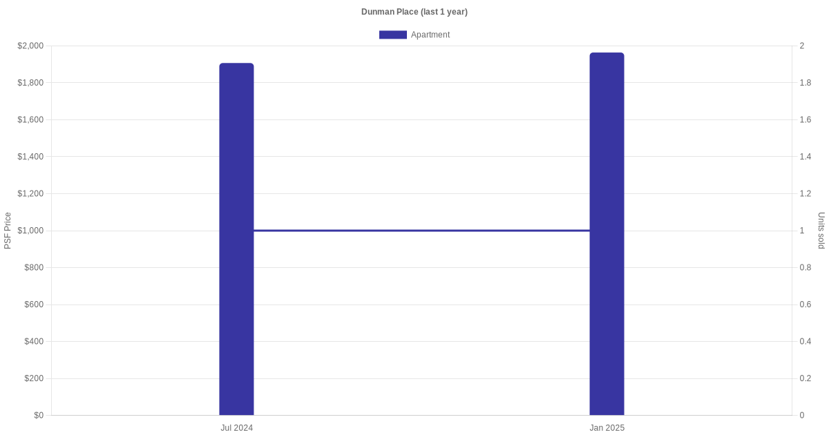 There were a total of 4 sales transactions for Dunman Place in the last 3 years, with the latest one recorded in Jan 2025. Disclaimer : our transactions data below does not include block numbers as the data is not available.