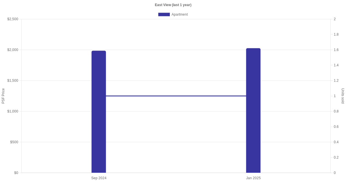 There were a total of 4 sales transactions for East View in the last 3 years, with the latest one recorded in Oct 2025. Disclaimer : our transactions data below does not include block numbers as the data is not available.