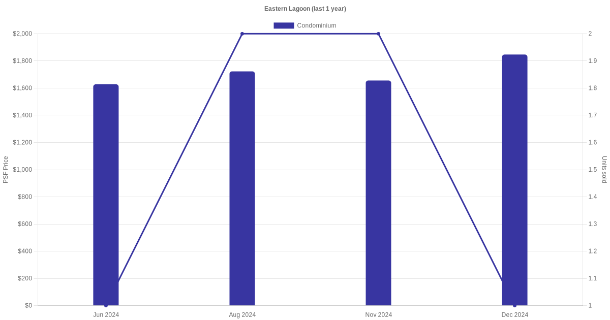 There were a total of 24 sales transactions for Eastern Lagoon in the last 3 years, with the latest one recorded in Dec 2025. Disclaimer : our transactions data below does not include block numbers as the data is not available.