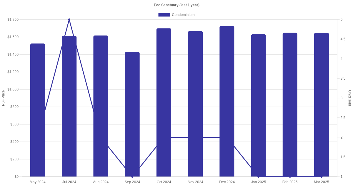 | Mar 2025 | $1,125,000 (Resale) | $1,686 | Condominium | Eco Sanctuary Chestnut Avenue (District 23) | 16-20 | 667 sqft | 99 years | 2012 |