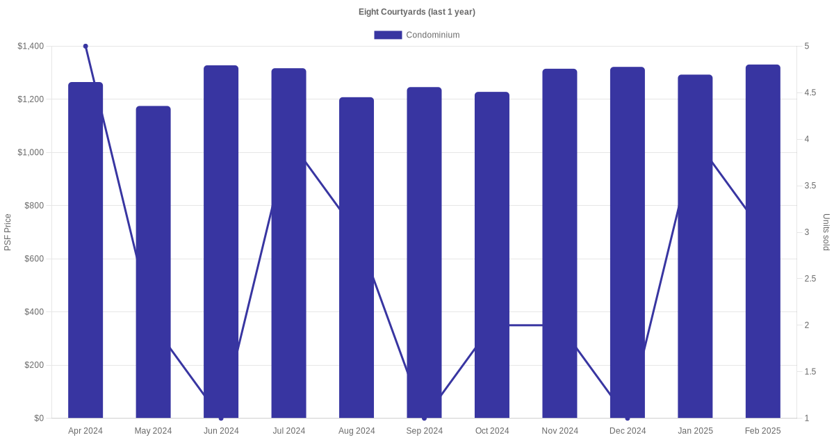The graph below shows the average monthly transacted sale price for each of the condominium units for Eight Courtyards in the last 3 years. This is based on the transactional data collated for Eight Courtyards for the selected period.
