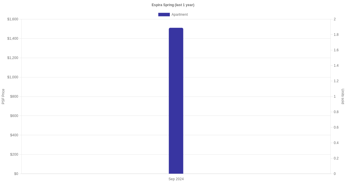 There were a total of 2 sales transactions for Espira Spring in the last 3 years, with the latest one recorded in Sep 2024. Disclaimer : our transactions data below does not include block numbers as the data is not available.