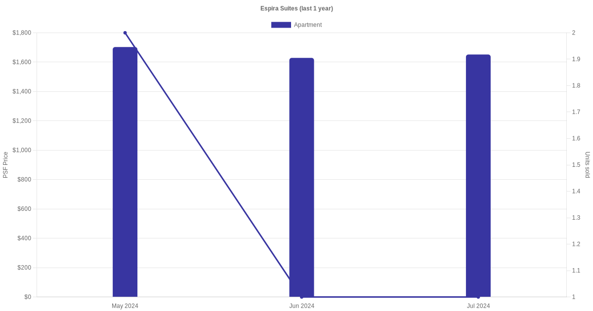 There were a total of 8 sales transactions for Espira Suites in the last 3 years, with the latest one recorded in Oct 2025. Disclaimer : our transactions data below does not include block numbers as the data is not available.