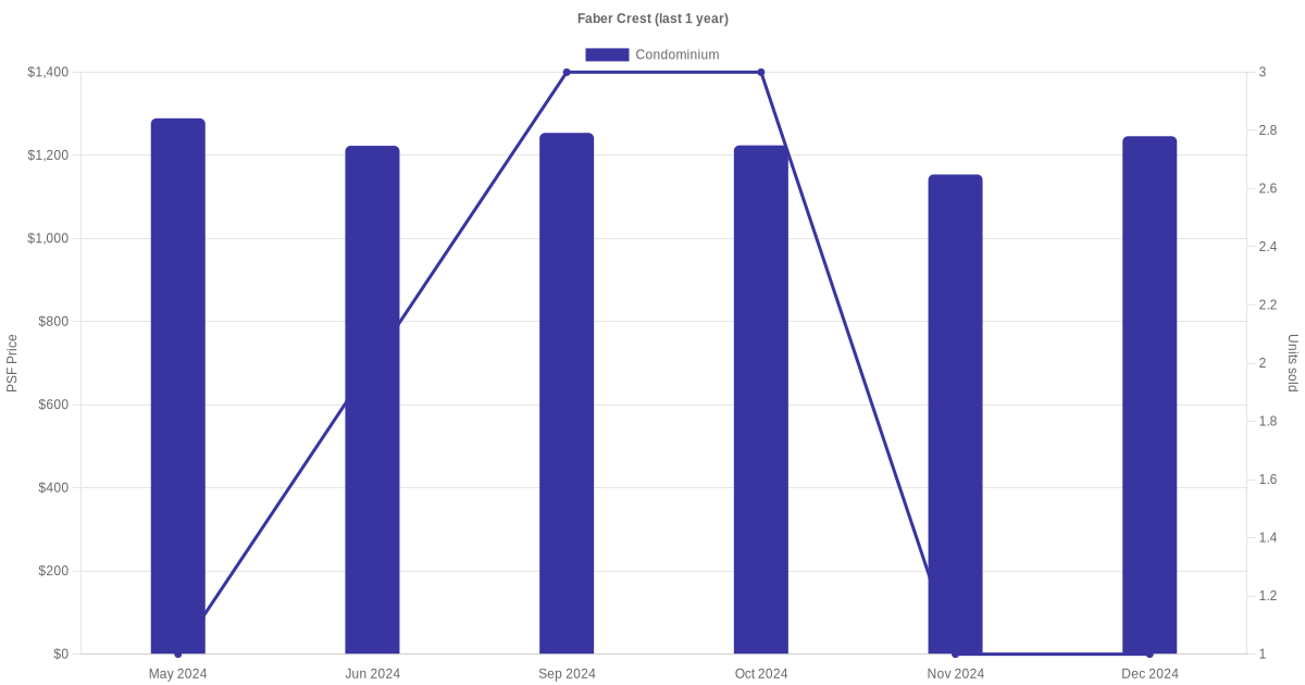 There were a total of 23 sales transactions for Faber Crest in the last 3 years, with the latest one recorded in Dec 2025. Disclaimer : our transactions data below does not include block numbers as the data is not available.